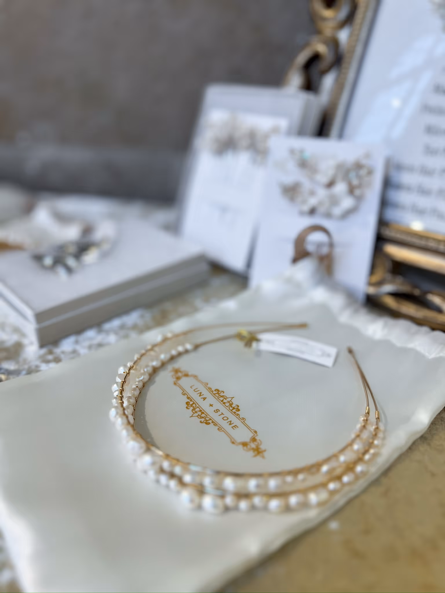 Hair accessories are so much fun and can add an extra touch of elegance or sparkle! We recently held a trunk show event with accessory designer Luna and Stone, who offer stunning handmade hair pieces, including hair clips and hair vines, that can elevate any bridal look. These beautifully crafted pieces are handmade in Canada and can even be customized to suit your feel!