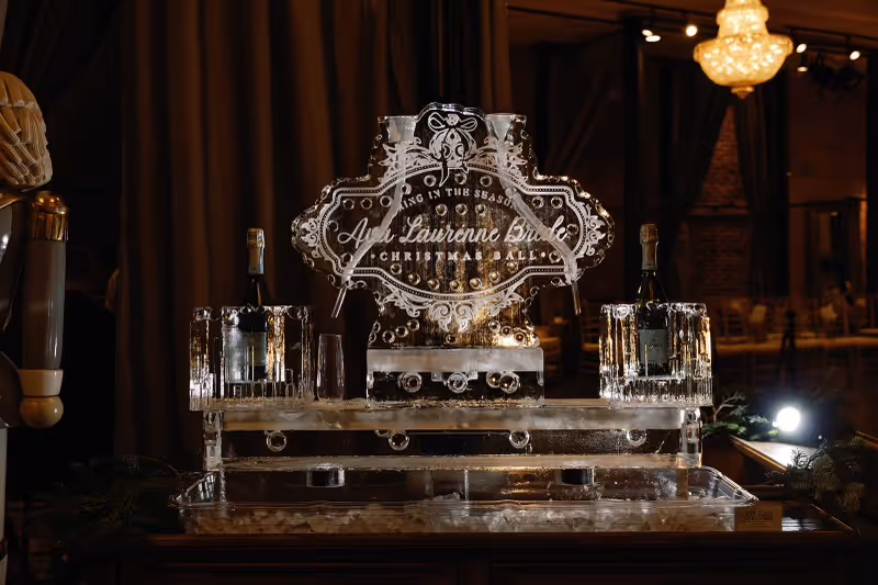 Every year we are thrilled to work with Ice Age Ice Sculptures to create a truly breathtaking work of art and stunning center piece for our Christmas Ball. This year they out did themselves with a perfectly sculpted piece featuring our event logo and a fun, interactive way to chill beverages at the same time! Visit their website to learn more or follow them on Facebook!